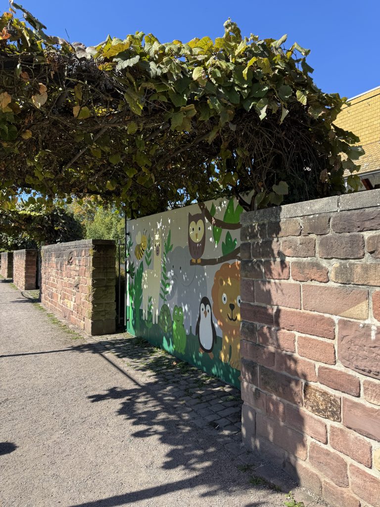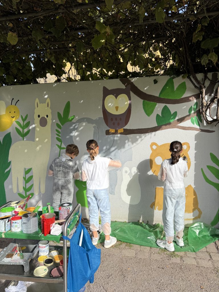 In dieser Woche durften wir als Schloss-Schule in Kooperation mit dem Gartenbauamt eine Wand beim Feuerwehrspielplatz gestalten. Unsere Schülerinnen und Schüler waren mit Begeisterung dabei und hatten große Freude daran, die Entstehung und Entwicklung des Kunstwerks mitzuerleben und selbst mitzugestalten.